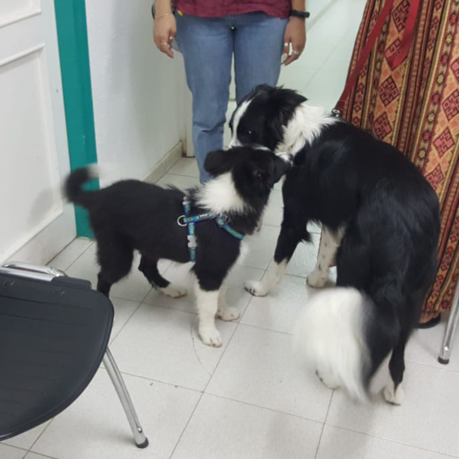 מפגש חברים במרפאתנו בביאליק! 😸 מימין עוגי כלבה בוגרת ומשמאל בילי בן 4 חודשים. טיפ חשוב לגורים - מומלץ לחשוף גורים (כמובן אחרי חיסונים) לכמה שיותר גירויים חדשים כגון אנשים, ילדים, כלבים וכדומה. חשיפה זו תמנע בעתיד בעיות התנהגות.