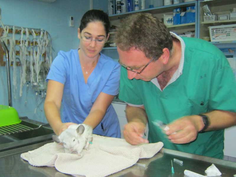 מקרה מהמרפאה: הצ'ינצ'ילה שבתמונה, שמה "סימי" והיא בת כמעט שנתיים. זאת ההמלטה השנייה שלה וגם הפעם, כמו בהמלטה הראשונה, הגור היה מאוד גדול והיא עברה ניתוח קיסרי. תקופת ההריון של צ'ינצ'ילה היא 111 ימים בממוצע והגורים נולדים מכוסים בפרווה (עם שיניים!!). מאחלים מזל טוב!
